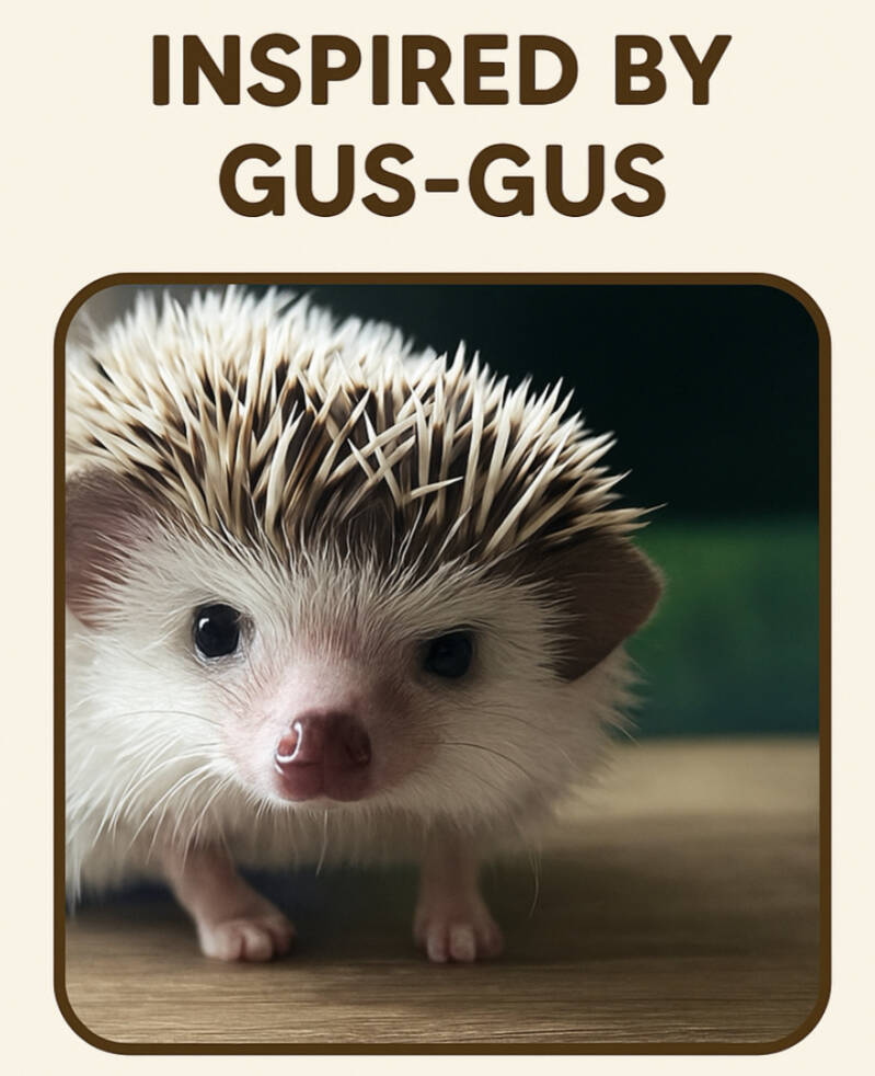 Gus-Gus isn’t your typical cuddly therapy animal. He’s a little grumpy, a little huffy, and very much his own hedgehog. When he’s startled or overwhelmed, he makes a loud “huff” and curls into a sharp “prickle ball.”